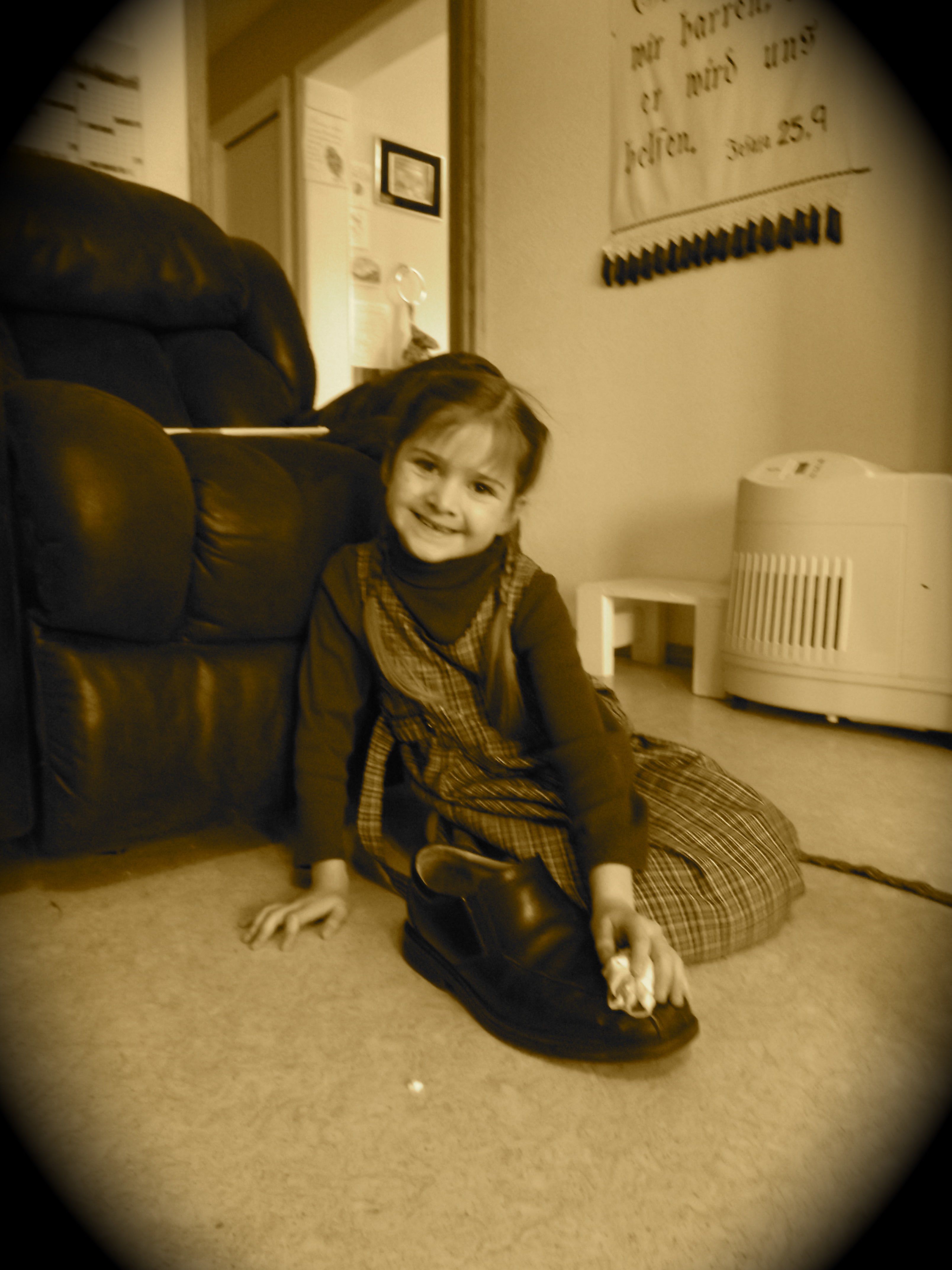 We decided to do somethings special when Daddy was gone, so on Tuesday we went to Grandma’s. All of Daddy’s family from around here came for the afternoon we had supper together. We children enjoyed playing Bump outside without sweaters.